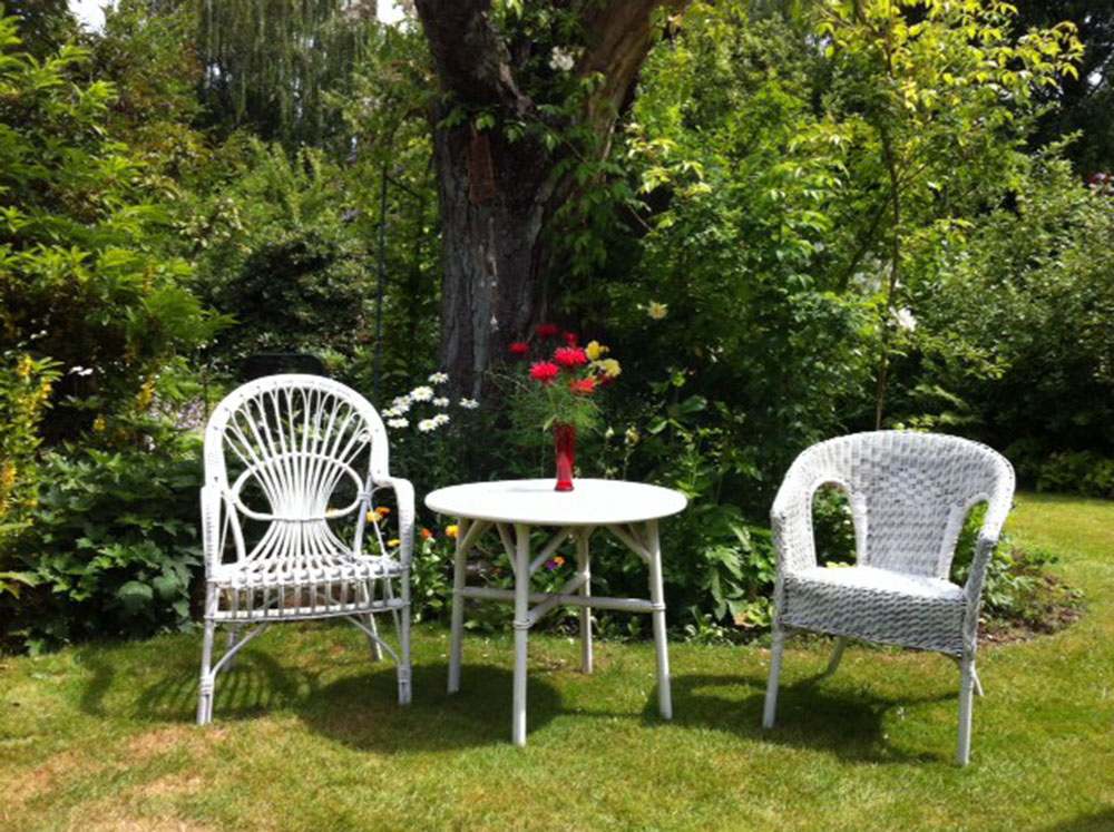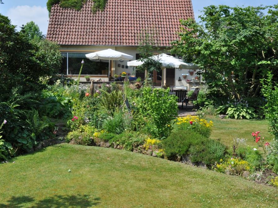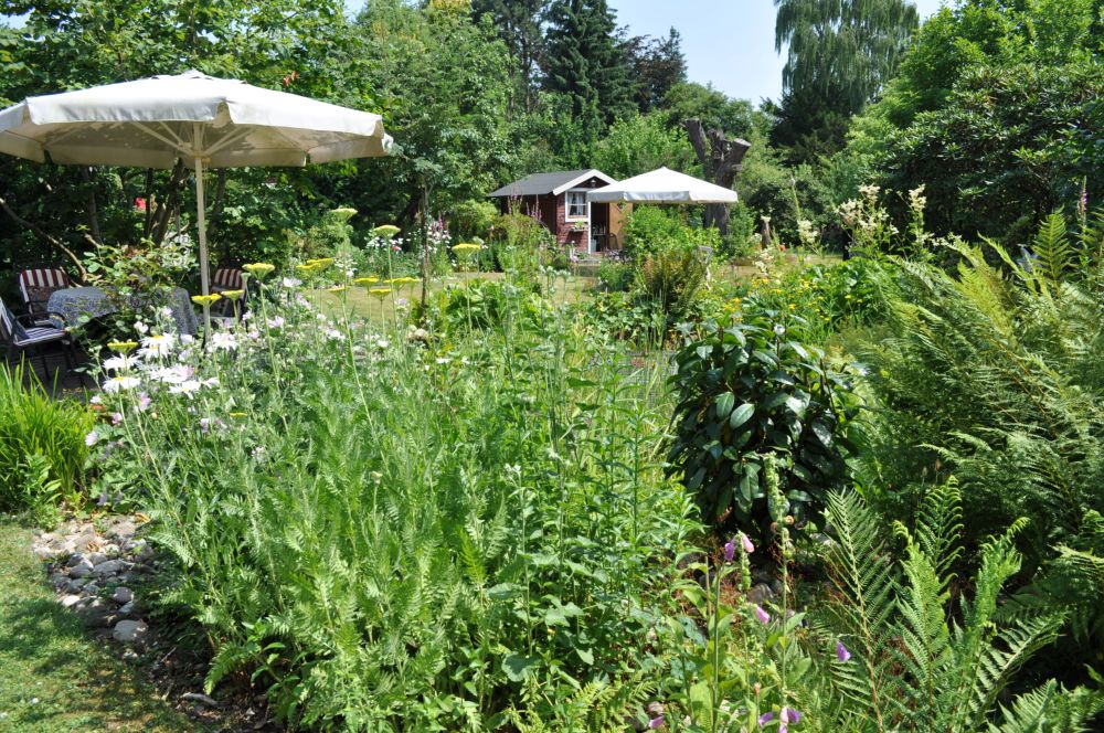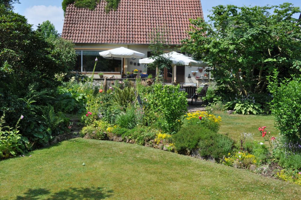 Großer, naturnah angelegter Garten, der sich um eine kleine Teichlandschaft herum jede Saison neu präsentiert.