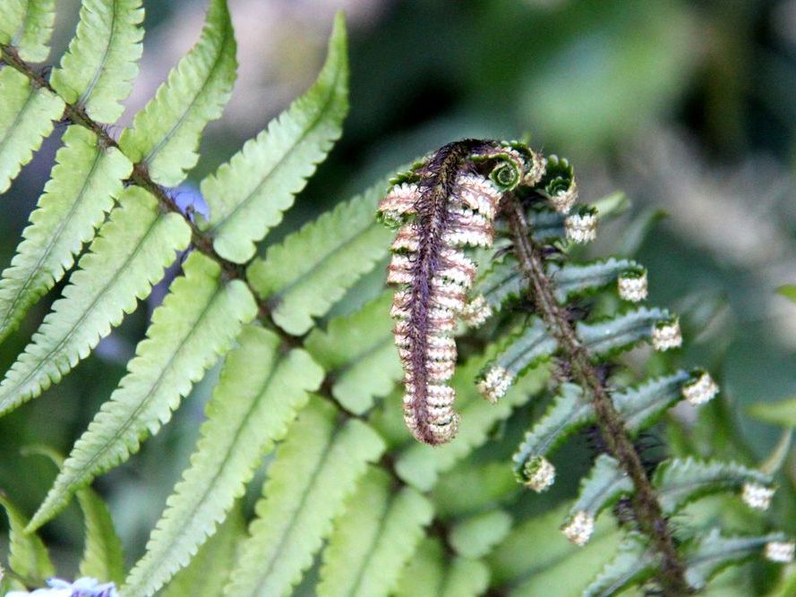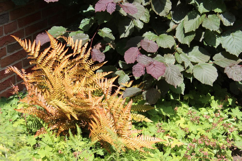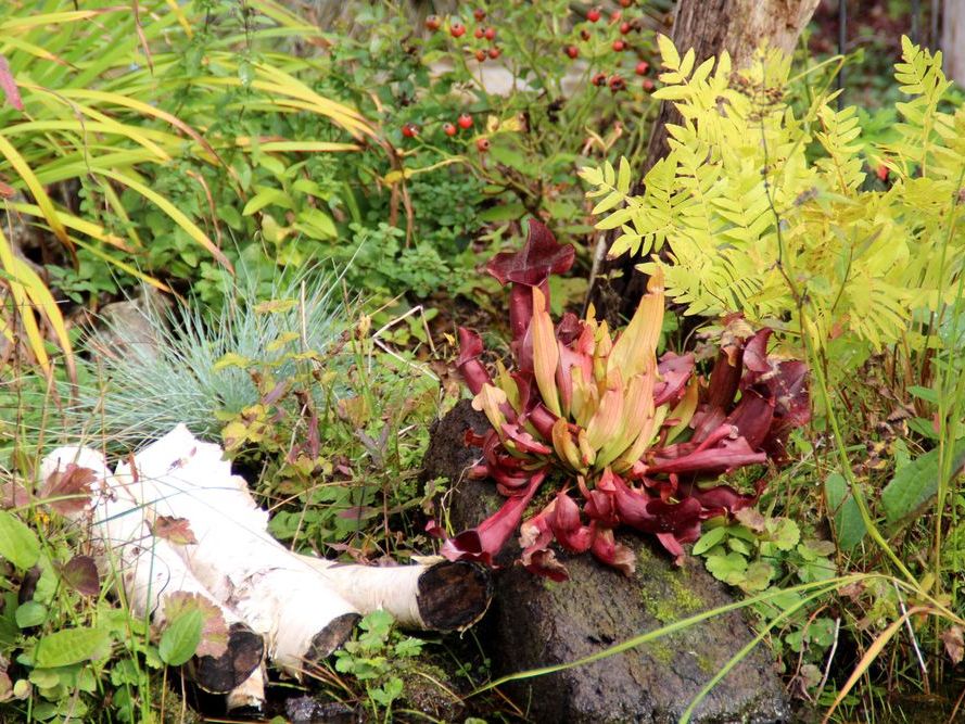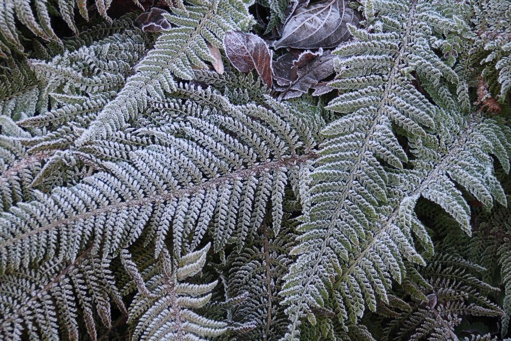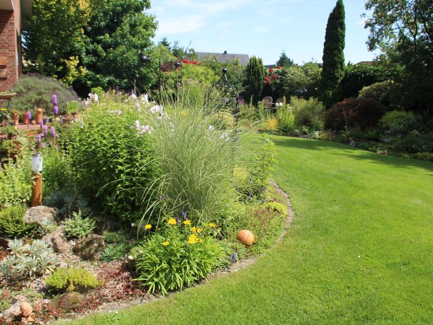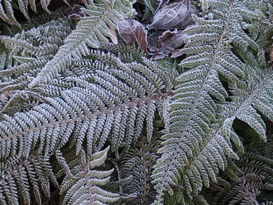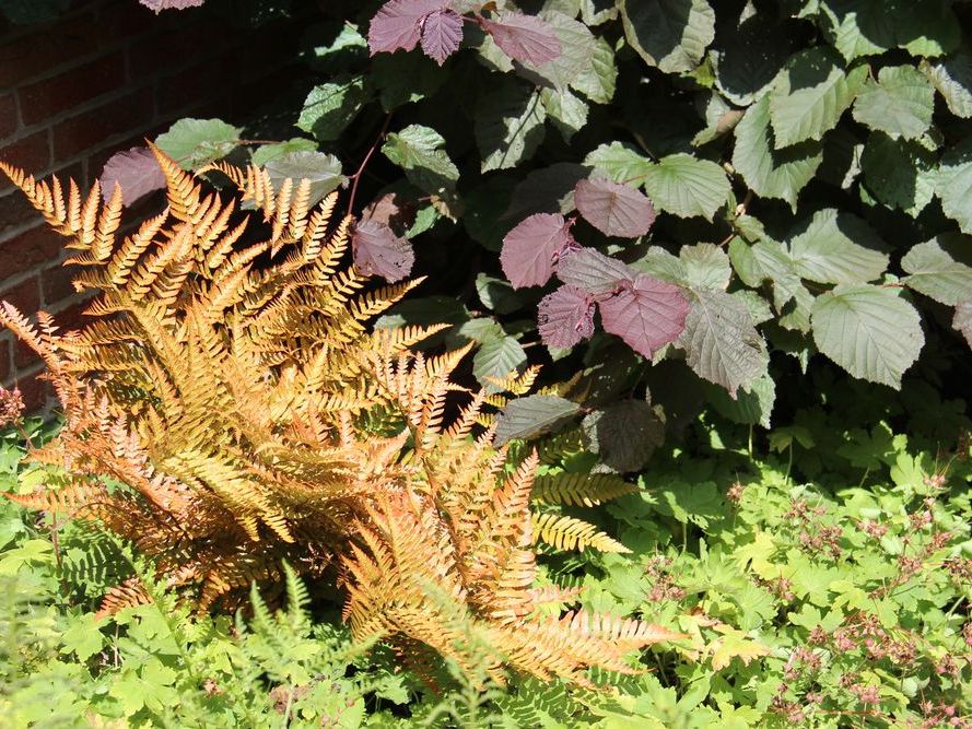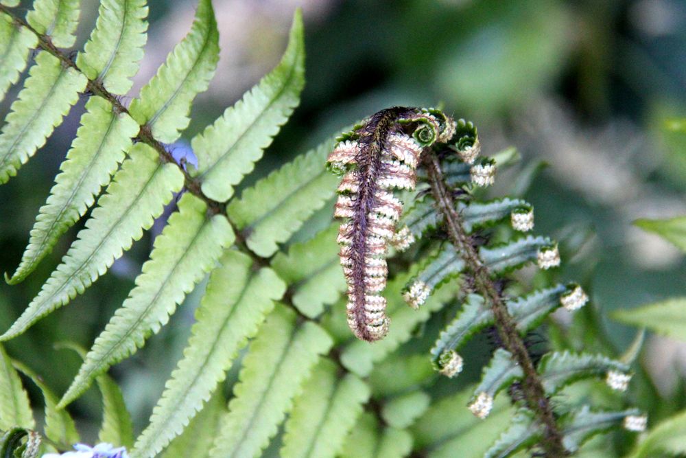 In unserem naturnah angelegten Garten (500 m²) können Sie über 50 Farne kennenlernen, die meisten sind auch im Winter grün (diverse Farninfos gratis). Im Seerosenteich leben grüne Teichfrösche, auf der Terrasse haben sich niedrige Fetthennensorten in hübschen Gefäßen versammelt.