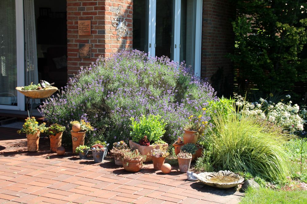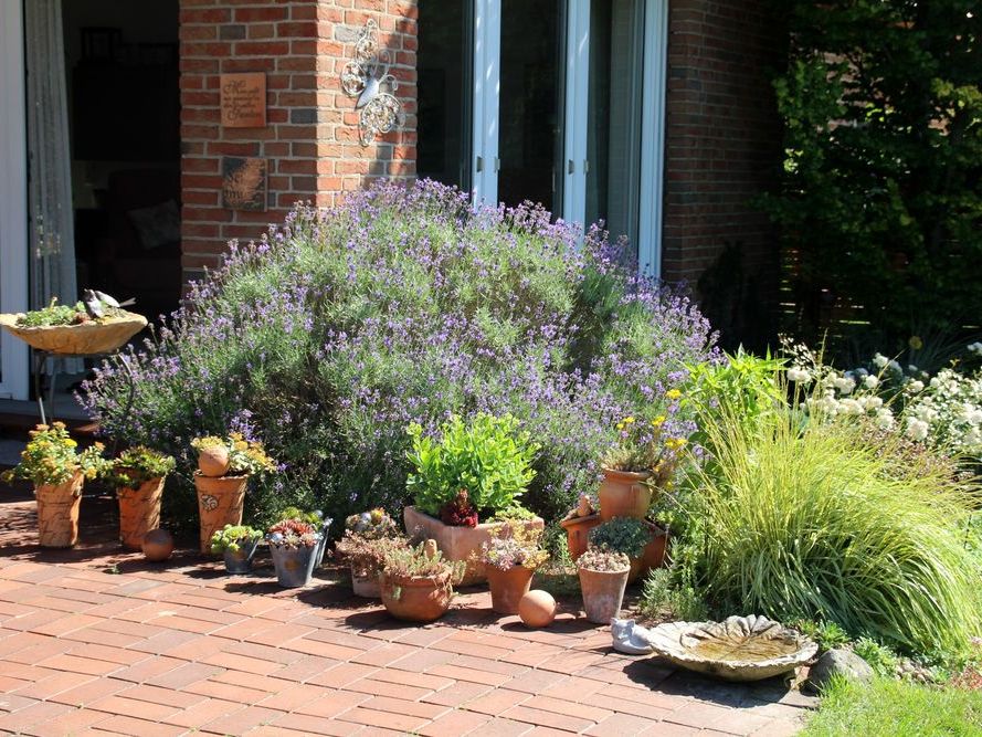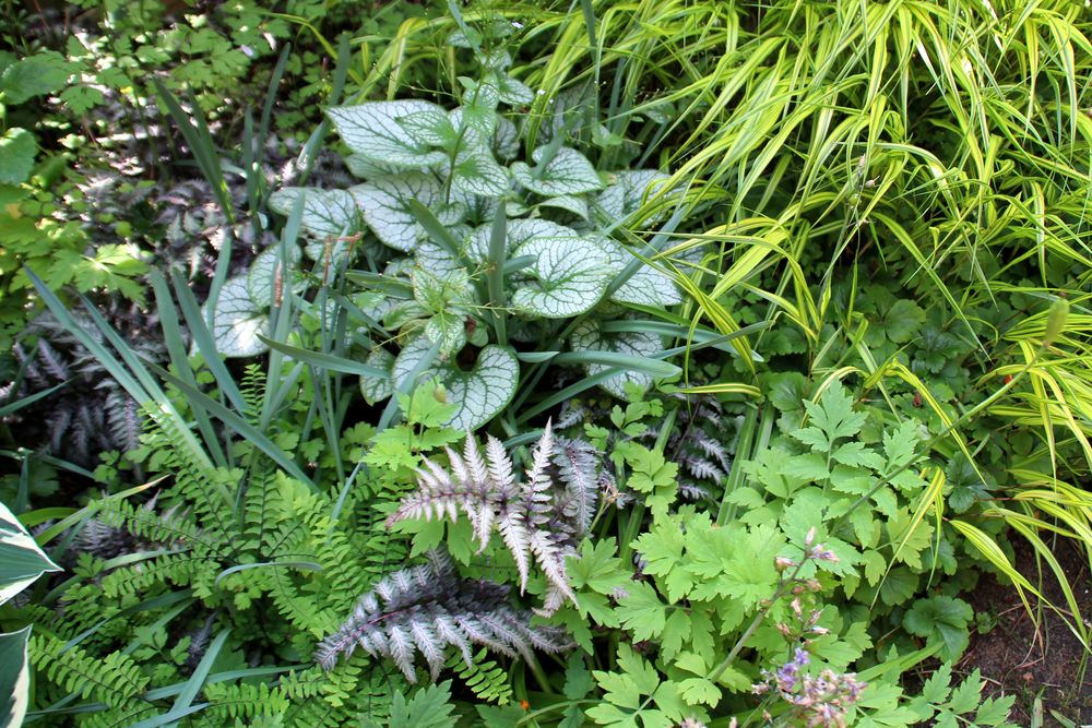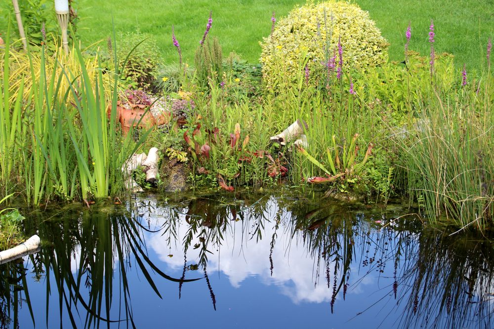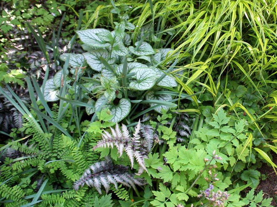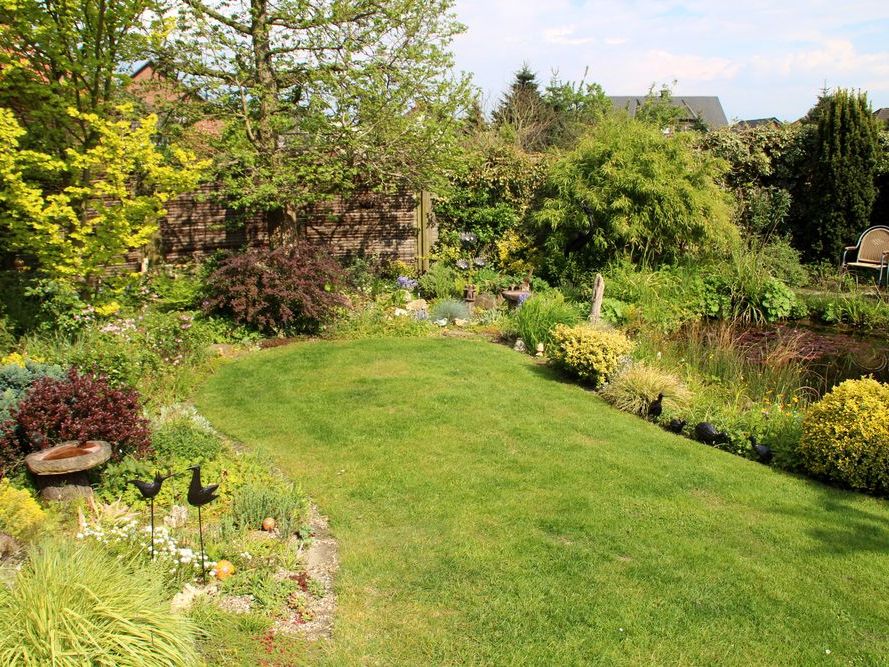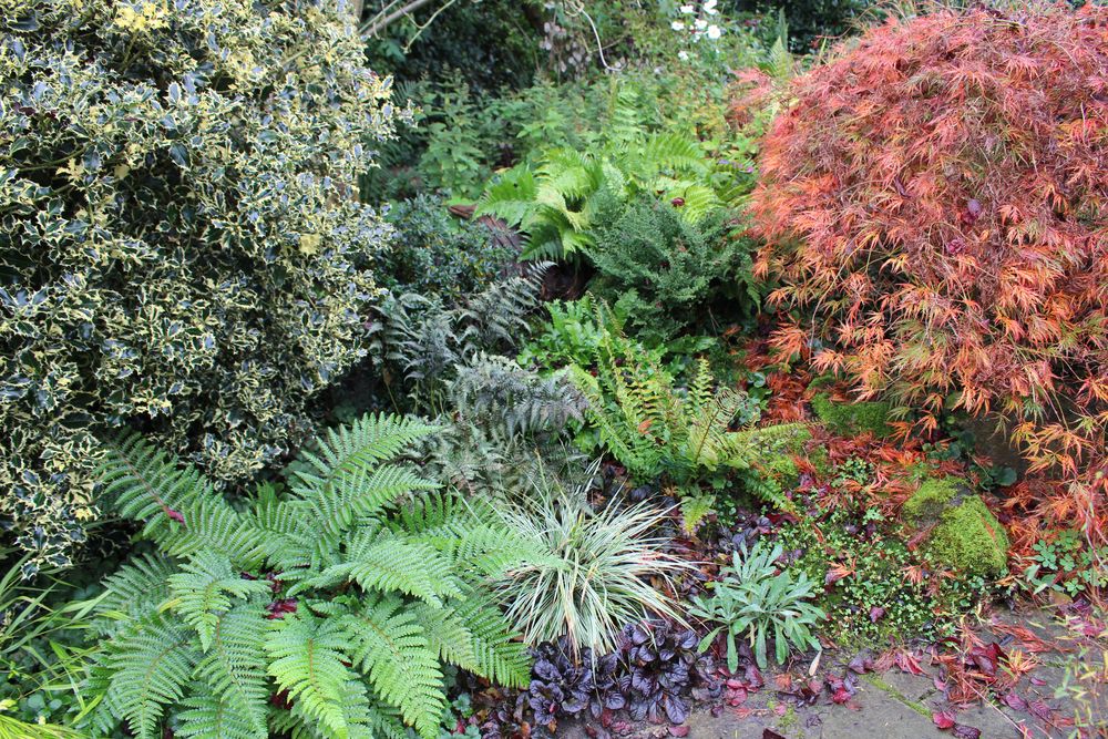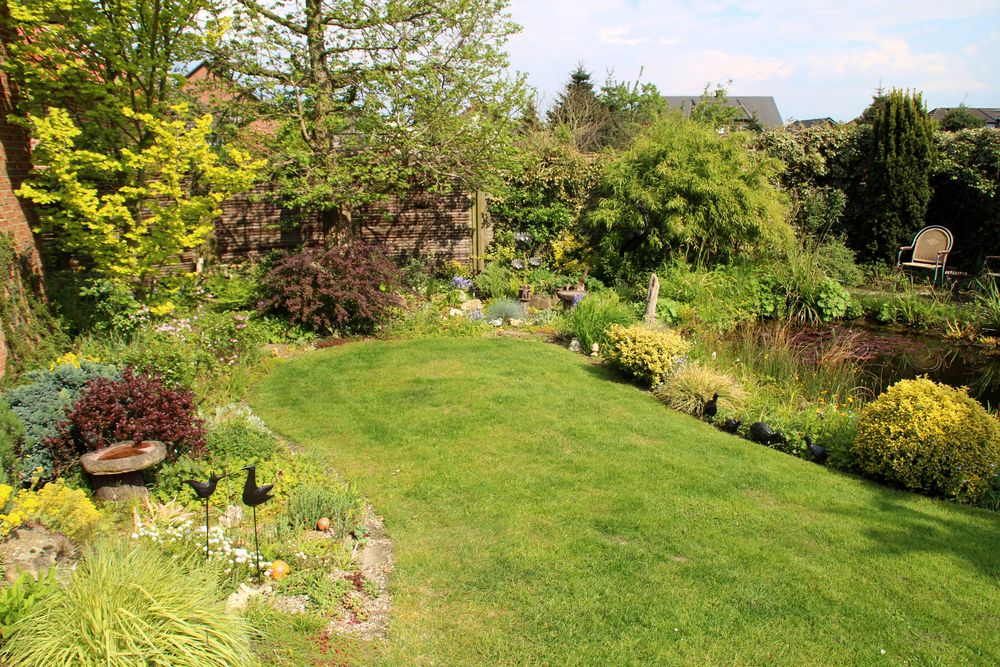 In unserem naturnah angelegten Garten (500 m²) können Sie über 50 Farne kennenlernen, die meisten sind auch im Winter grün (diverse Farninfos gratis). Im Seerosenteich leben grüne Teichfrösche, auf der Terrasse haben sich niedrige Fetthennensorten in hübschen Gefäßen versammelt.
