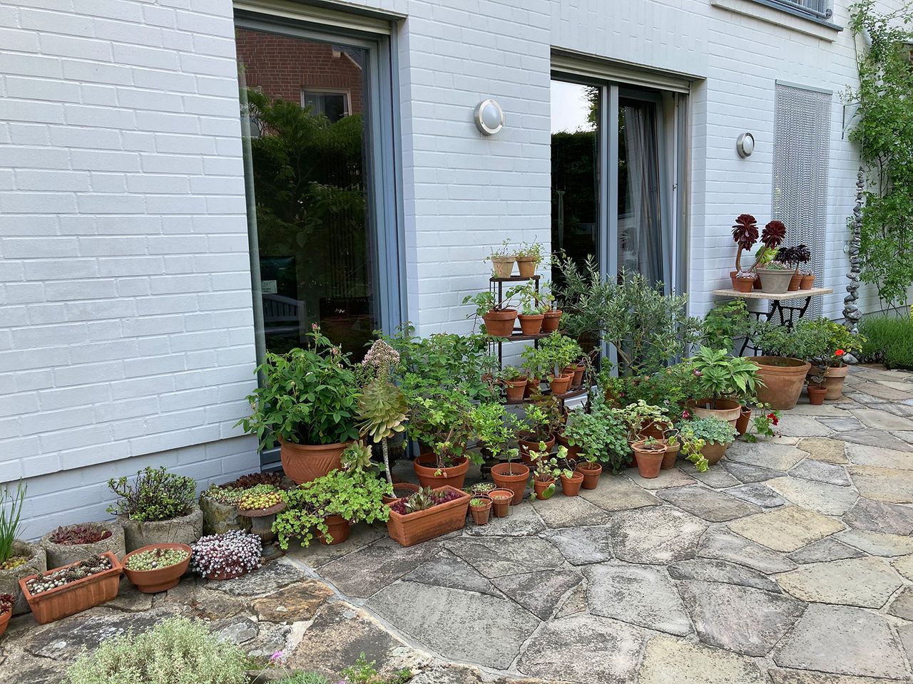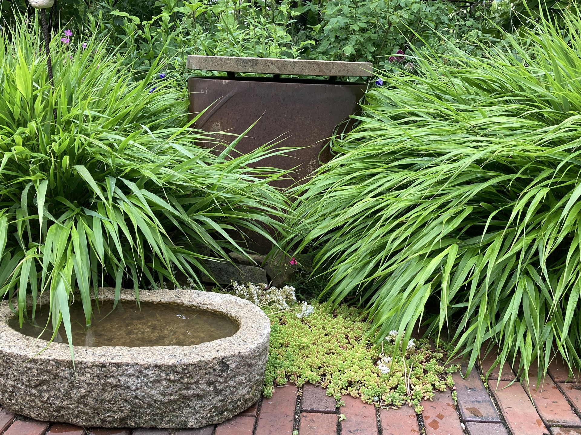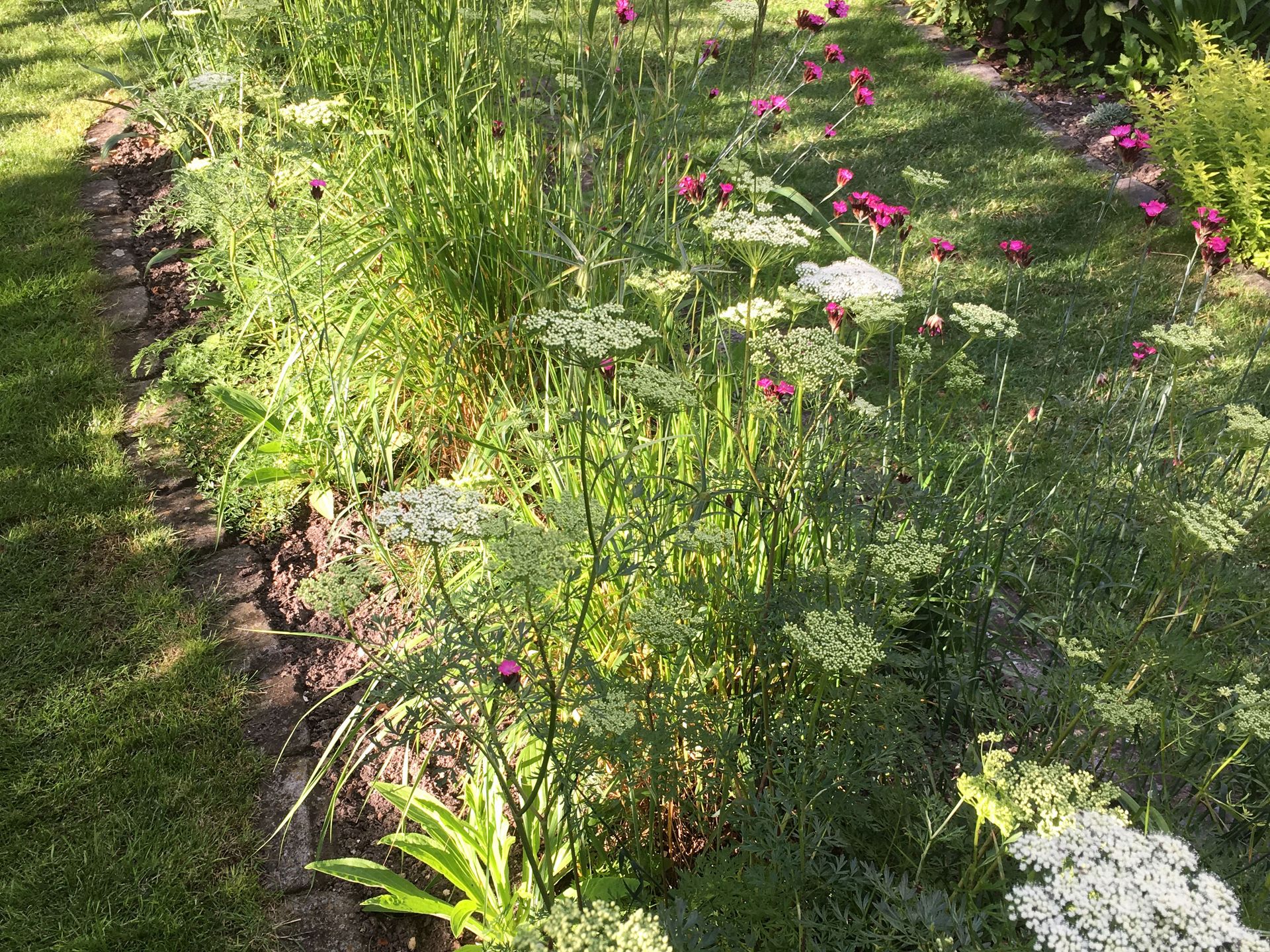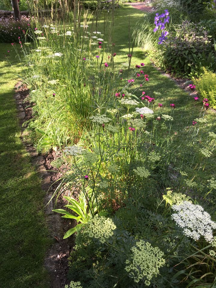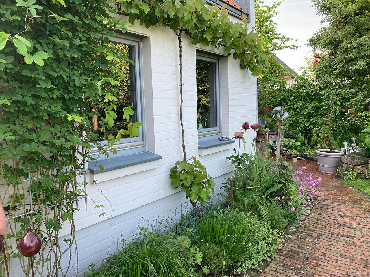 "Es wird durchgeblüht." Ganz im Sinne Karl Foersters blüht es zu allen Jahreszeiten in unserem Garten (800 qm). Es gibt Sonnen-, Schattenbeete und Topfarrangements, in denen die Leidenschaft für besondere Stauden und Gräser kreativ umgesetzt wird. Trockenmauern, Rosen und Gehölze geben dem Garten Struktur. Zentraler Punkt ist der Senkgarten. Es gibt verschiedene Sitzgelegenheiten, von denen der Garten immer wieder in einem anderen Blickwinkel betrachtet werden kann.