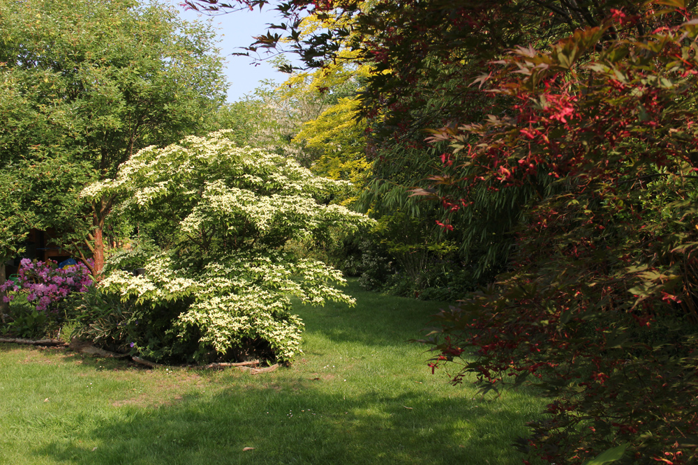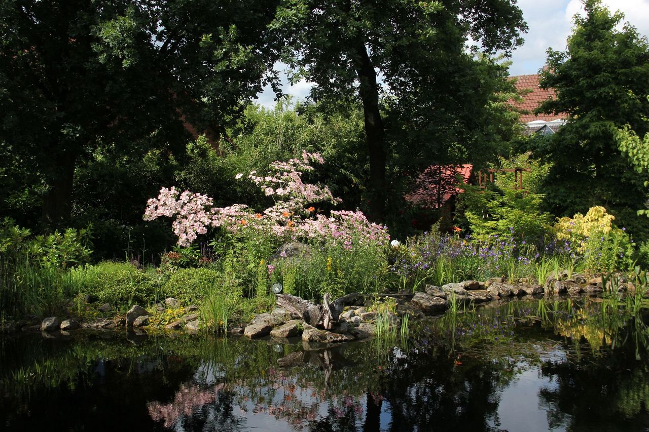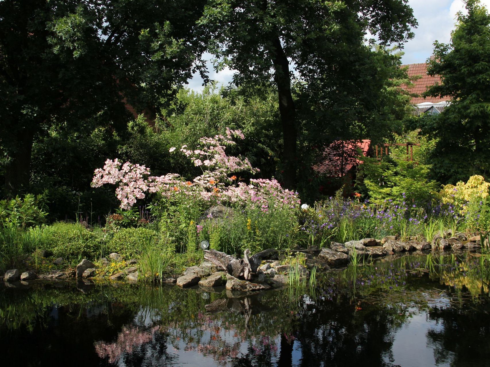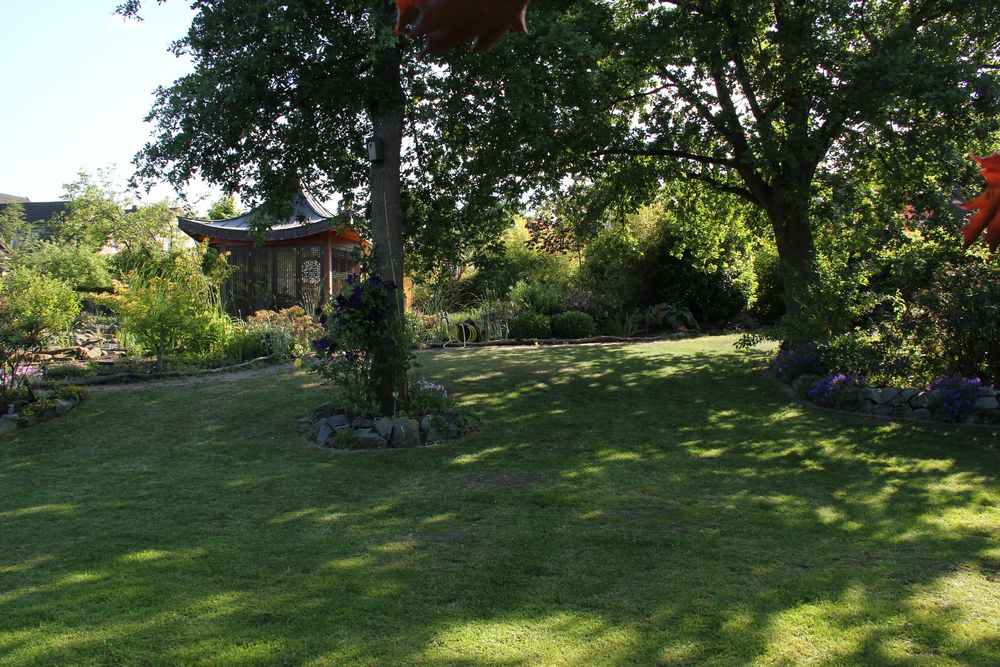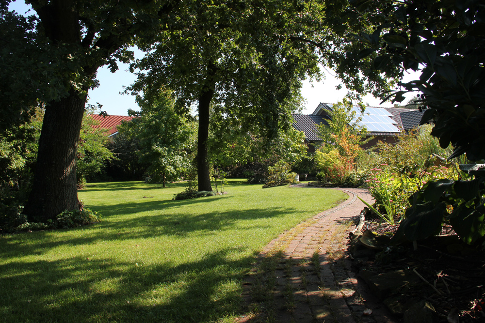 Der Garten (2000 m2, etwa 28 Jahre alt) hat sich seit dem letzten Jahr etwas verändert: Wir haben große Teile der Bambuspflanzung sowie Bäume entfernt, um mehr Licht zu bekommen. Schwerpunkte der Pflanzen sind weiterhin Gehölze asiatischer Herkunft wie Ahorne, Magnolien, Azaleen, Paeonien und Kamelien, Cornus und Bambus, aber auch viele Stauden. An einem großen, naturnahen Schwimmteich steht ein koreanischer Pavillon und ein Gewächshaus. Nähere Informationen und Impressionen unter www.langer-hasbergen.de.