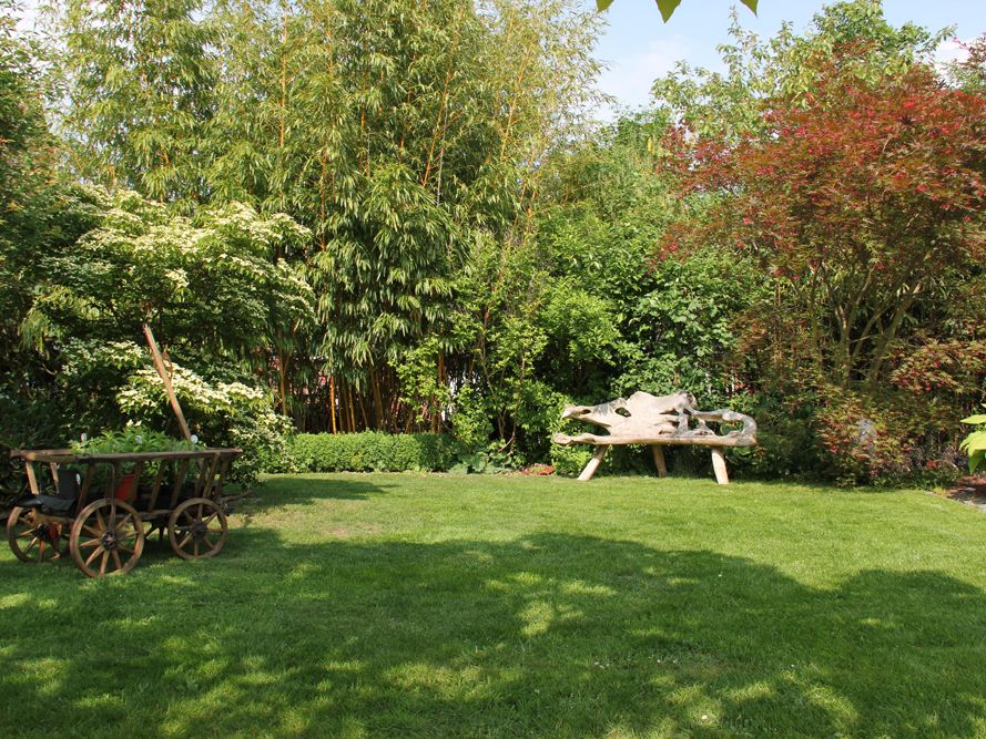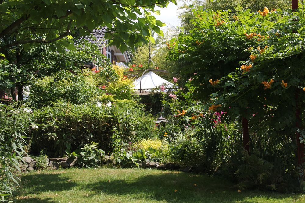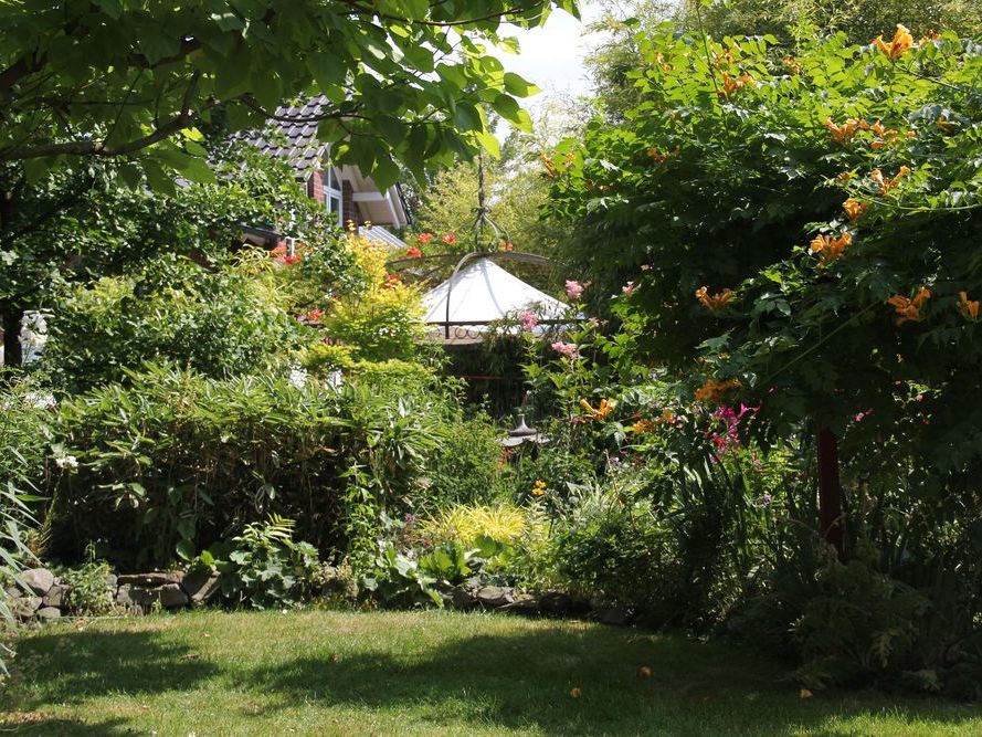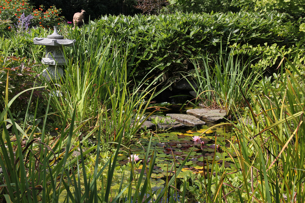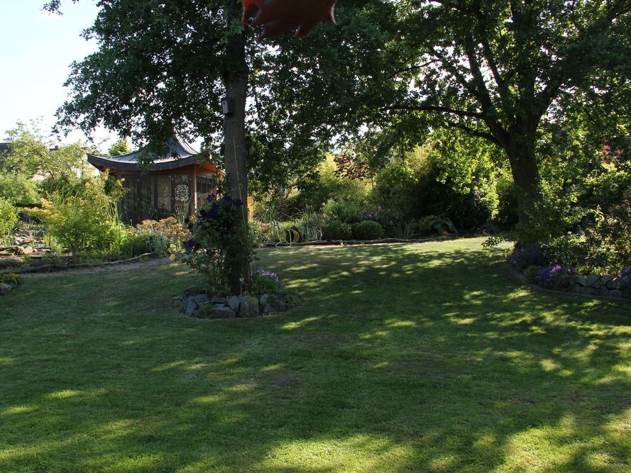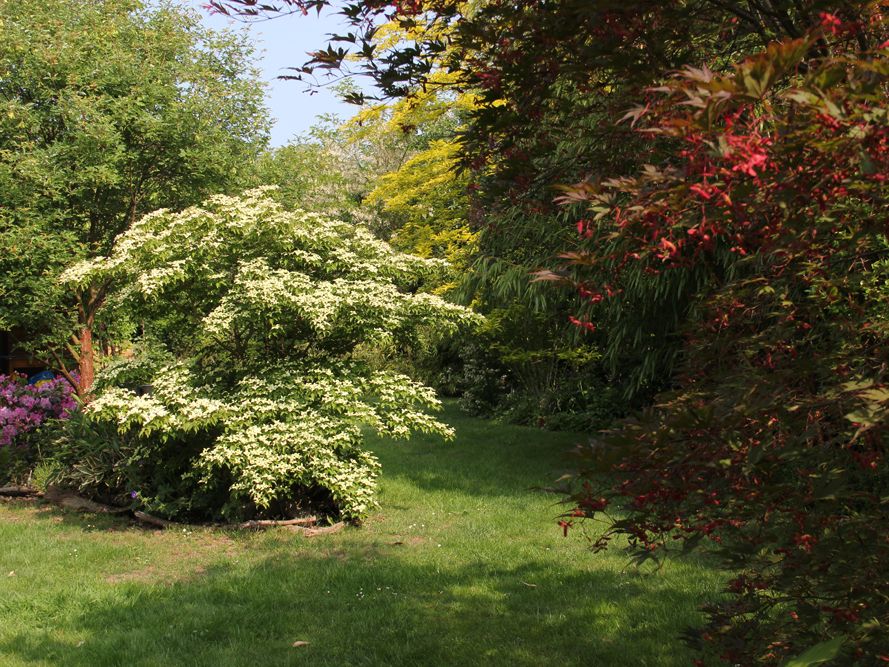 Der Garten (2000 m2, etwa 28 Jahre alt) hat sich seit dem letzten Jahr etwas verändert: Wir haben große Teile der Bambuspflanzung sowie Bäume entfernt, um mehr Licht zu bekommen. Schwerpunkte der Pflanzen sind weiterhin Gehölze asiatischer Herkunft wie Ahorne, Magnolien, Azaleen, Paeonien und Kamelien, Cornus und Bambus, aber auch viele Stauden. An einem großen, naturnahen Schwimmteich steht ein koreanischer Pavillon und ein Gewächshaus. Nähere Informationen und Impressionen unter www.langer-hasbergen.de.