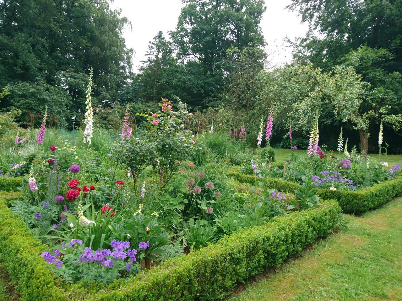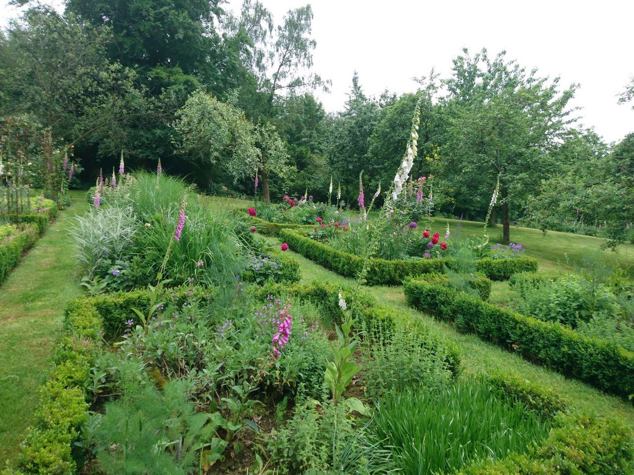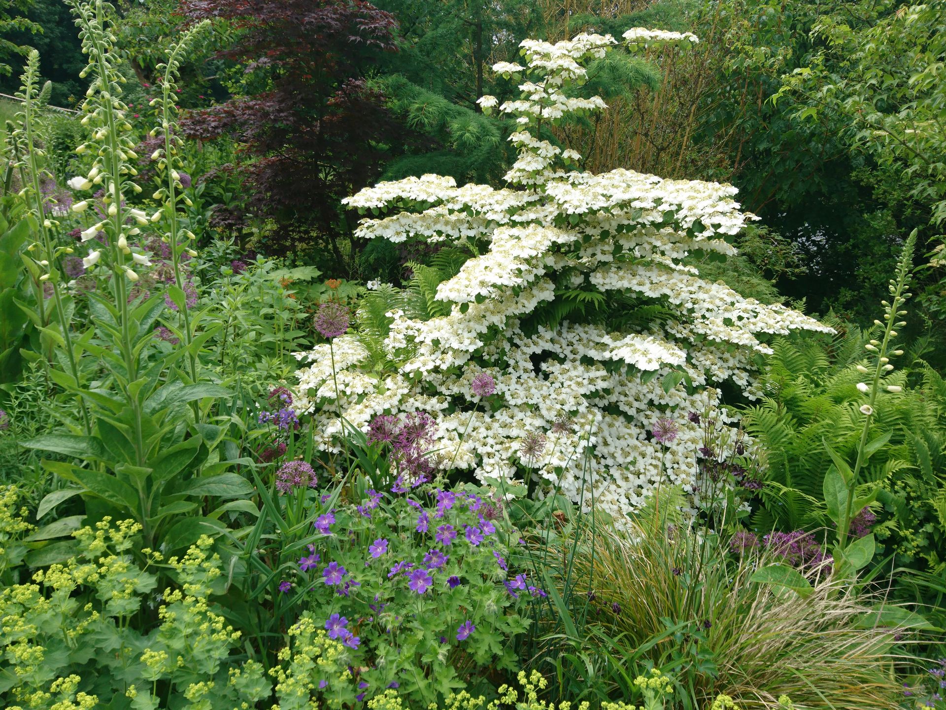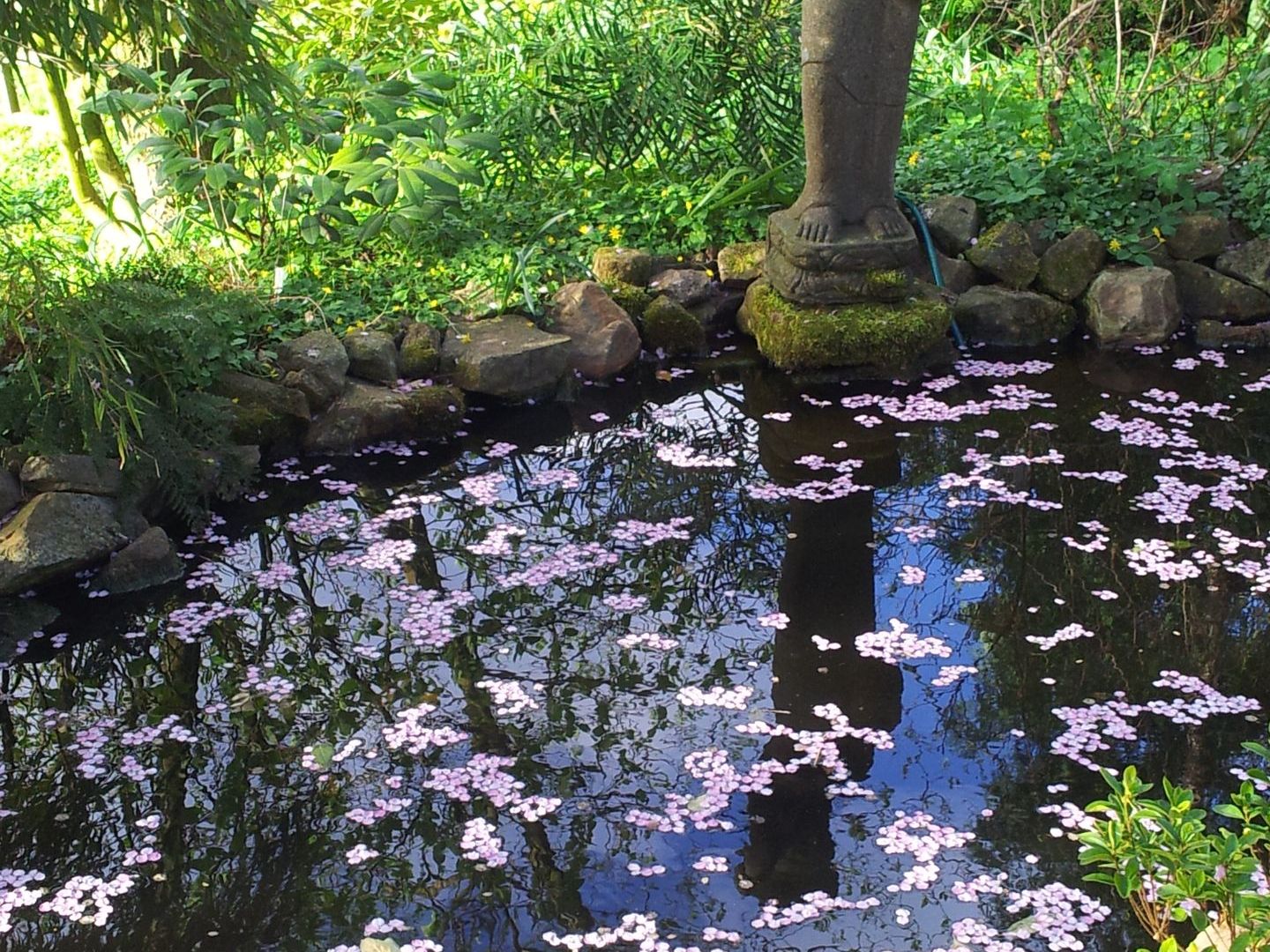 Großer naturnaher Hanggarten mit altem Baumbestand, vielen Stauden und Gehölzen, Teichanlage, Obstwiese und Nutzgarten.
