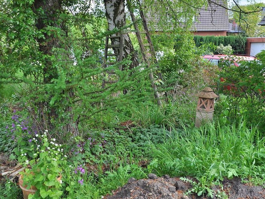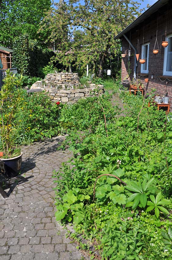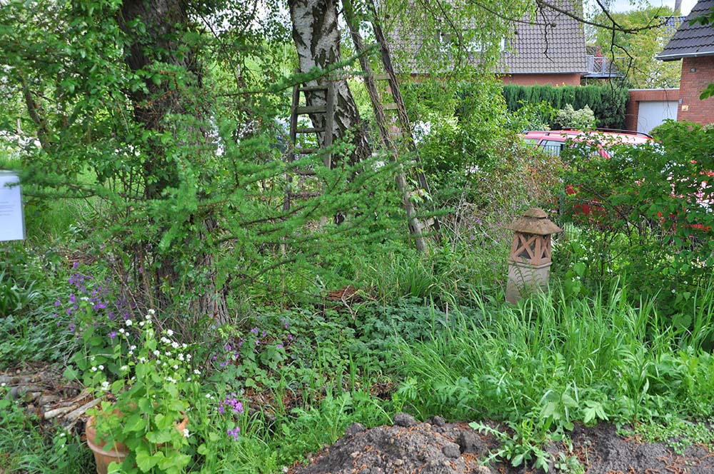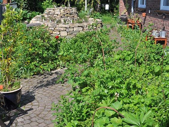 Ein konventioneller Garten aus den 1960- er Jahren wird seit 2013 Stück für Stück zu einem Naturgarten. Ziel ist ein "ErlebnisRaum" nicht nur für Menschen. Durch heimische Bepflanzung und naturnahe Bauweisen sind als Elemente Trockenmauern, Wiese, Kräuterrasen, Waldbiotope, Sandstein "Alpinum", Hochstaudenbeet, Sumpfbeet, Kalkhügel, Verrieselungsflächen und ein kleiner Schwimmteich entstanden. 90% der Bepflanzung ist heimisch. Bitte keine Hunde.