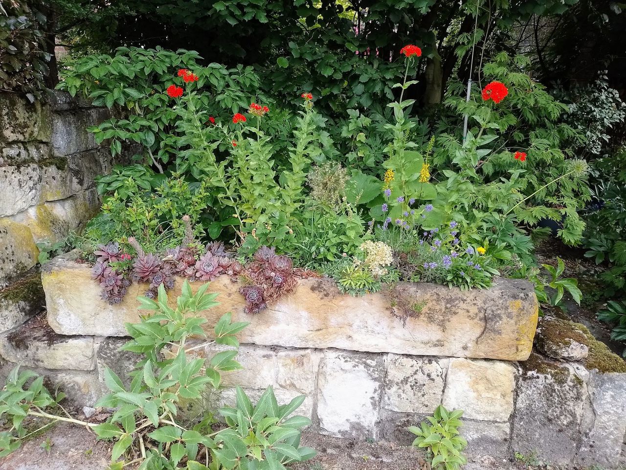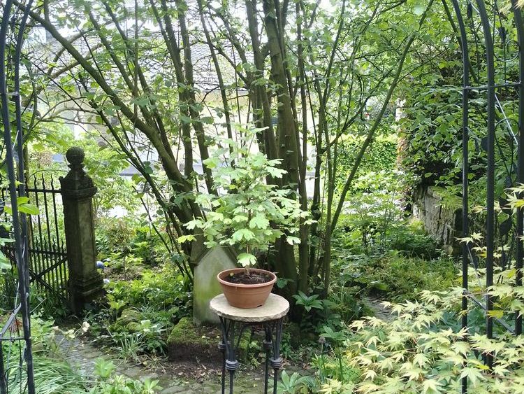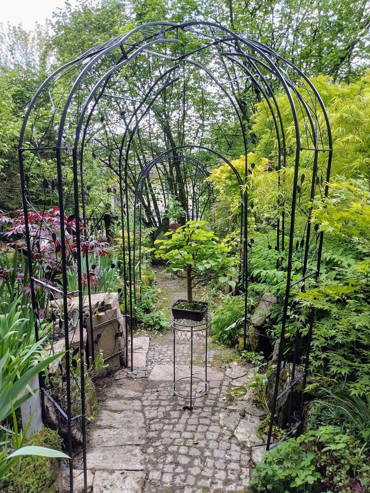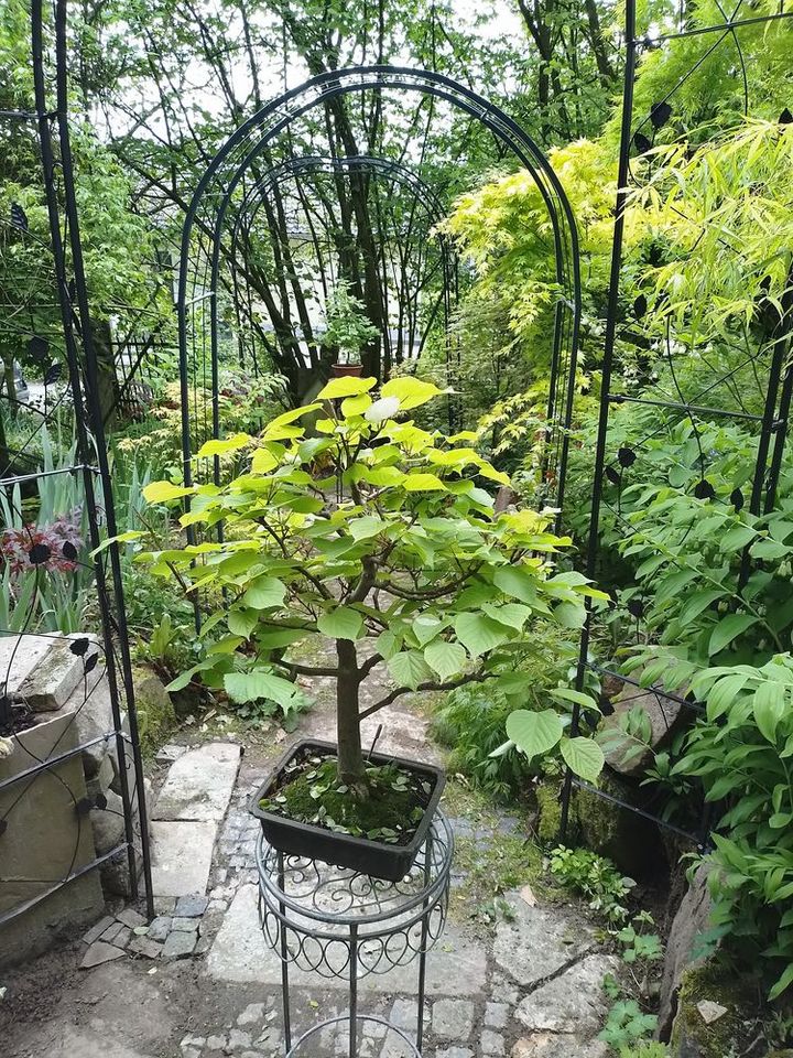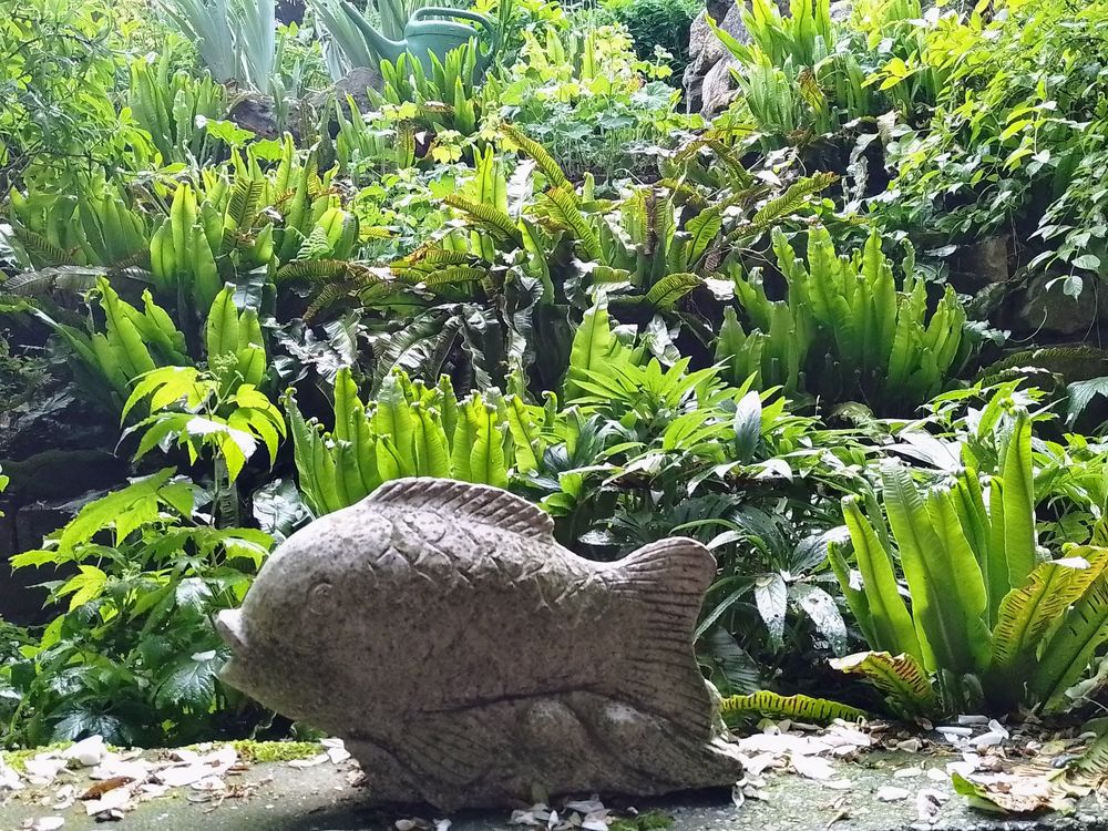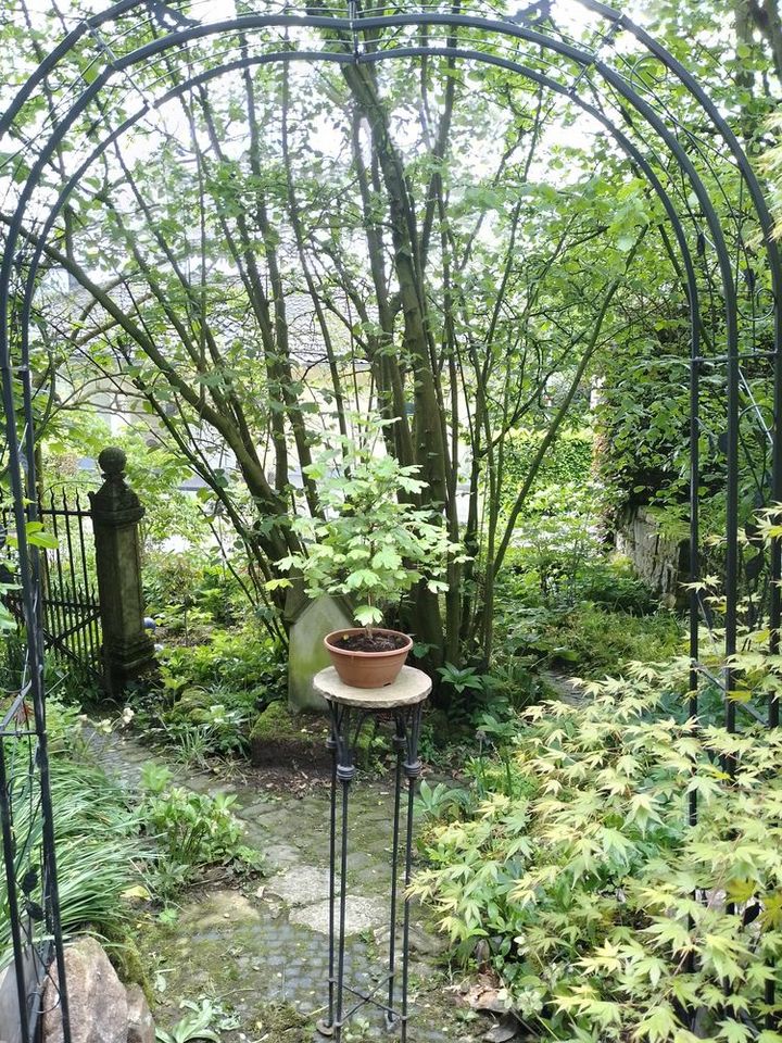 Ein 8.000 m2 großer Waldgarten mit den Schwerpunkten seltene Gehölze, Helleborus und Frühblüher und Farne. Ins Auge fallen viele bepflanzte Steintröge in allen Formen und Größen. Eine weitere Leidenschaft von uns ist die Gestaltung mit Natursteinen und Skulpturen. Der Garten ist zum großen Teil nicht barrierefrei. Verschlungene Wege führen zu einer Waldhütte und romantischen Sitzplätzen wie einer Geißblattlaube und zwei Waldsofas.
